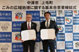 令和6年12月16日(月)に、中津市と上毛町は、ごみの広域処理に向けた協議を進めることについて、基本合意書を締結しました。