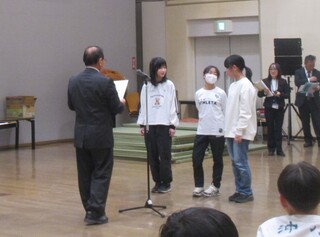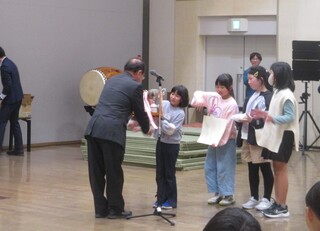 低学年の部は小楠小学校の『カルテットスター』チームが優勝、高学年の部は如水小学校の『ニットキャップビックドックナップサックメッチャキック』チームが優勝し、それぞれのチームに福澤旧邸保存会の大下事務局長より優勝杯が授与されました。