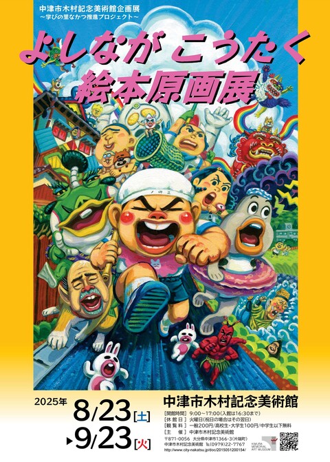 絵本『給食番帳シリーズ』、『ぼくだってウルトラマンシリーズ』などで知られる絵本作家、イラストレーターのよしながこうたくさんの絵本原画を展示紹介します。力強い独特の表現でエネルギッシュに展開される絵本の世界をお楽しみください。また、会期中は美術館でも絵本の販売を行います。