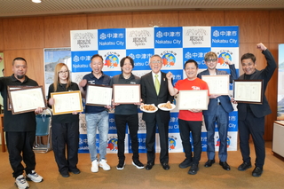 令和8年4月27日、中津市役所にて第17回からあげグランプリで受賞した各店舗の代表者の方々による受賞報告会がありました。中津市内のからあげ店においては7店舗9受賞に輝きました。
