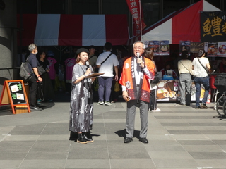 令和7年10月11日土曜日、「中津からあげ」商標登録10周年記念事業「中津からあげ祭りin福岡天神」が福岡市の福岡銀行本店広場で行われました。