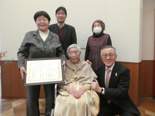 令和8年1月6日火曜日、百歳を迎えた池田 ミヨシさんのお祝いのためサテライト型特別養護老人ホーム悠久の里を訪問し、お祝い状と記念品を贈りました。